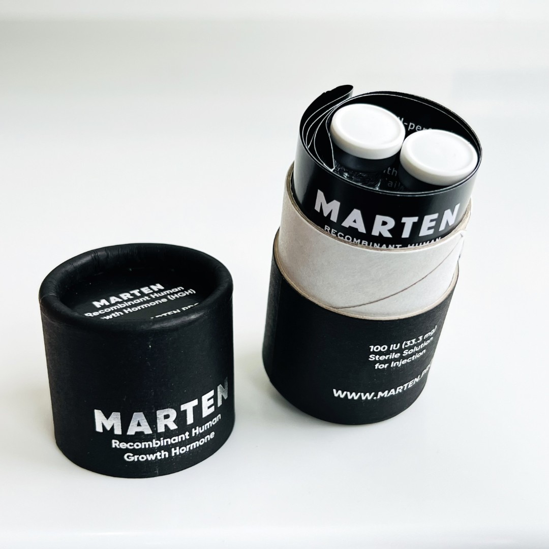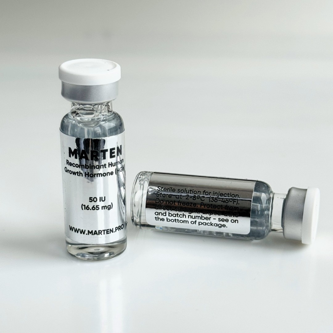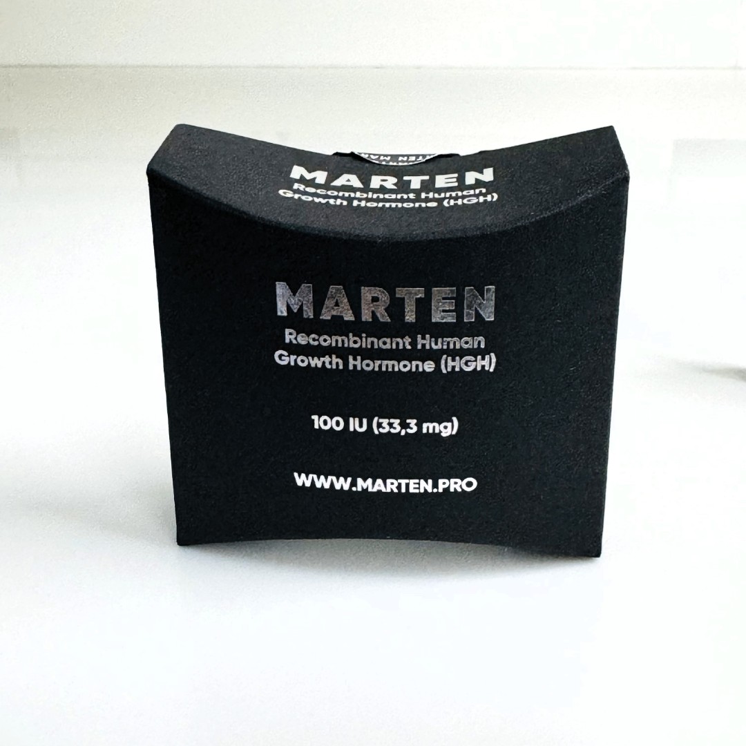 Мартен (Marten) выпускается в упаковке с двумя флаконами по 50 единиц (16,5мг) соматотропного гормона роста в стабильной жидкой форме в буферном, антибактериальном растворе со стабилизаторами.