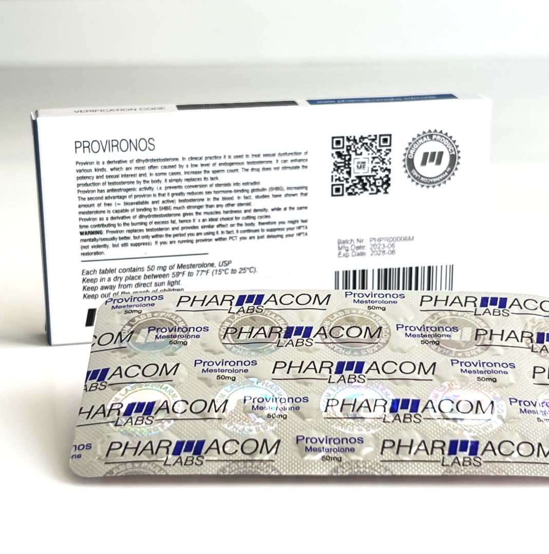 Препарат містить активну речовину местеролон, яка є стероїдним похідним дигідротестостерону. Його анаболічна активність становить близько 40% від тестостерону, а андрогенна - більше 150%. Provironos не тільки не ароматизується, але також володіє антиестрогенними властивостями, діючи як блокатор естрогенових рецепторів і інгібітор ароматази. Його особливість полягає в здатності підвищувати рівень вільного тестостерону в крові за рахунок блокування функцій глобуліну, що зв'язується з половими гормонами (ГСПГ).