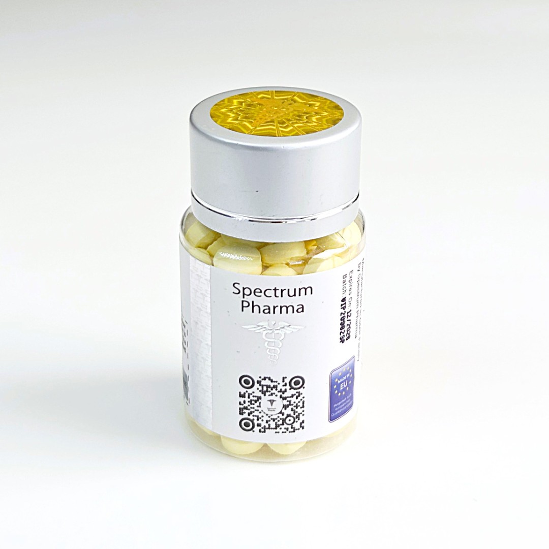 Turanabol Spectrum — это таблетки для пирорального применения. Упаковка представляет собой белую пластиковую бутылку из полиэтилена высокой плотности и содержит 100 желтых таблеток по 10мг действующего вещества каждая.