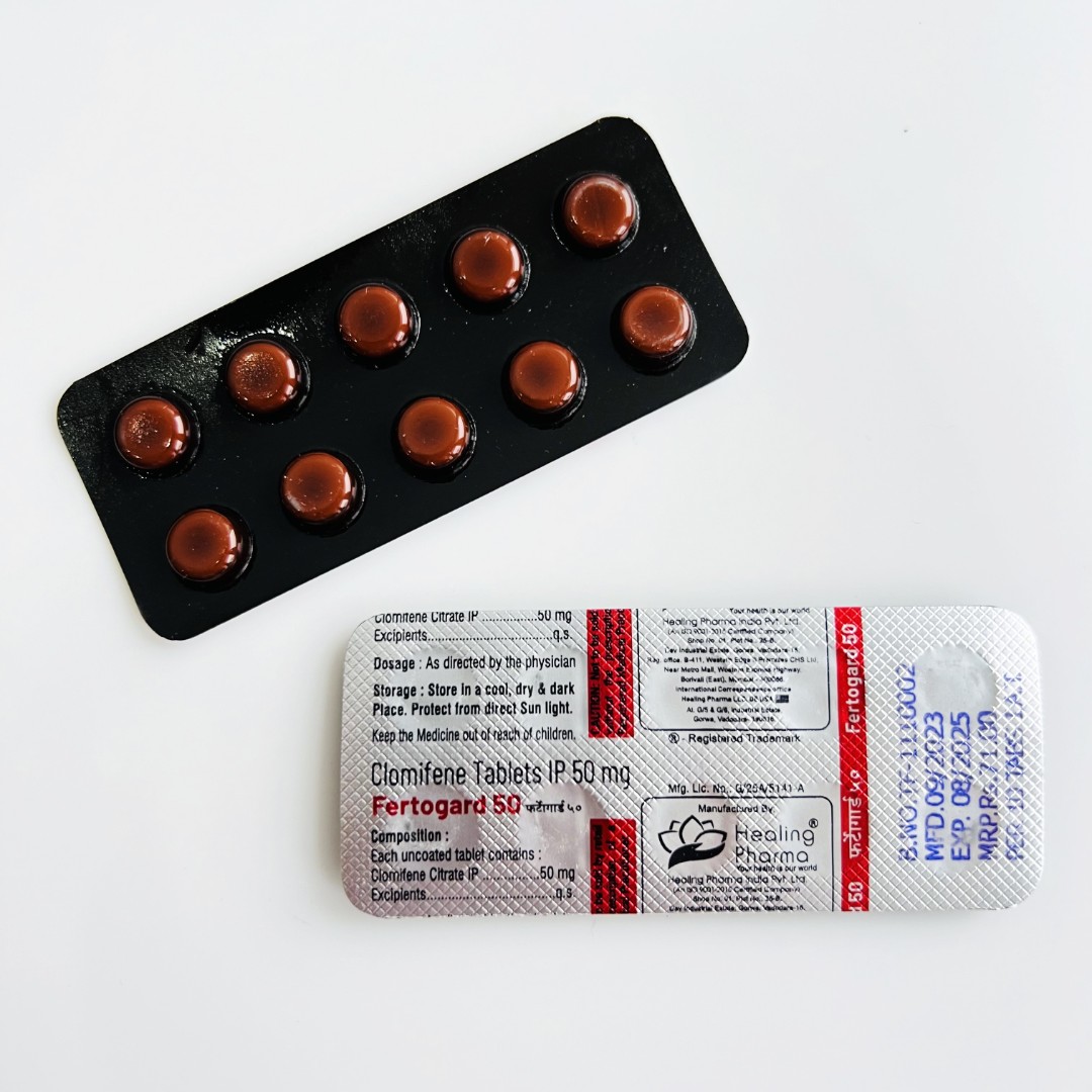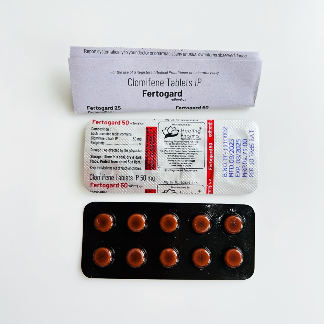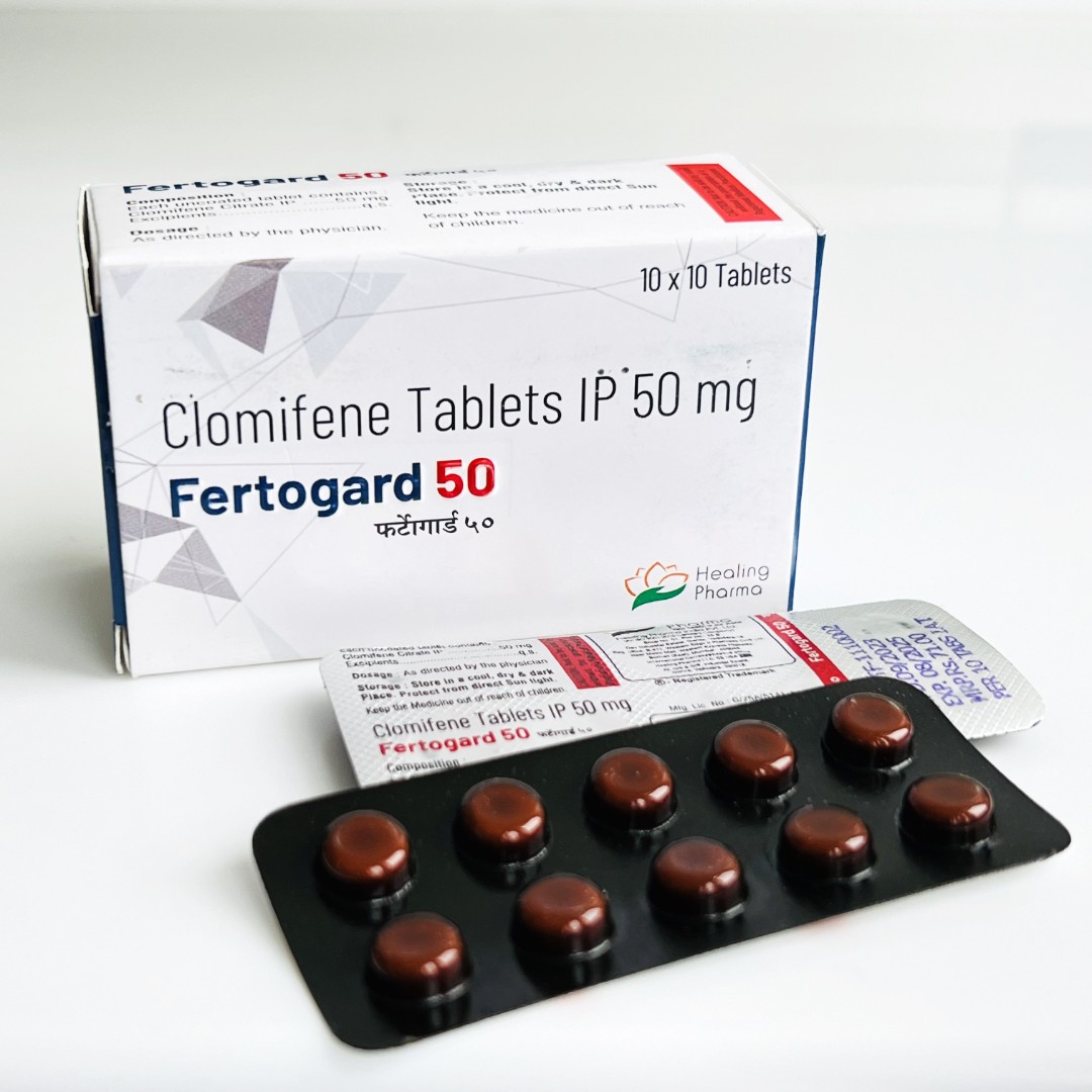 Фертогард 50 мг використовується для лікування безпліддя. Основною діючою речовиною в цьому препараті є кломіфен. Фертогард 50 - один з небагатьох способів викликати овуляцію при безплідді, спричиненому ановуляцією або олігоовуляцією. Немає доказів використання кломіфену у безплідних людей без визнаних причин. У таких випадках дослідження показали, що при прийомі кломіфену порівняно з плацебо наукова частота настання вагітності протягом циклу становить 5,6%. Правильна тривалість прийому препарату має вирішальне значення; його необхідно приймати з п'ятого дня циклу, а також щоденно перемішувати. Кліфіфен включає рівні стереоізомери: енкломіфен і зукломіфен. Зукломіфен має виражену естрогенну дію, в той час як енкоміфен - виражену андрогенну, тобто стимулює вироблення тестостерону за рахунок стимуляції осі ГРГ.