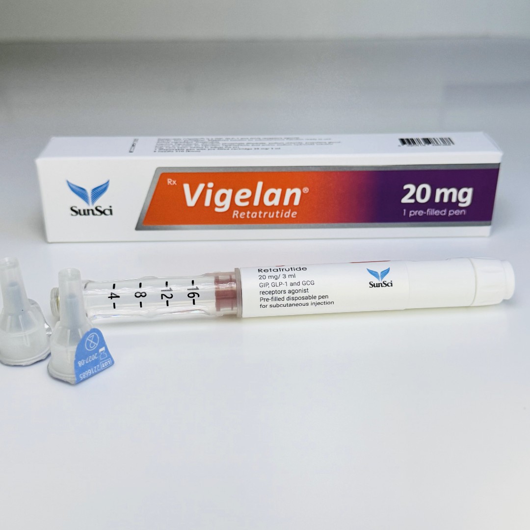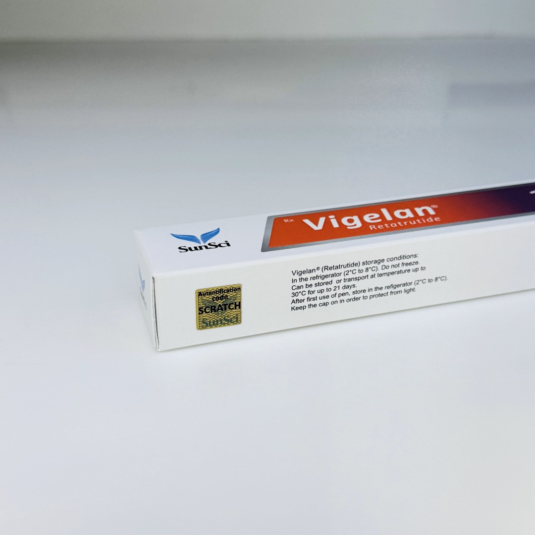 Саме цей виробник випускає ретатрутид Vigelan в єдиному дозуванні 20мг. Зберігається при температурі 2-8 градусів