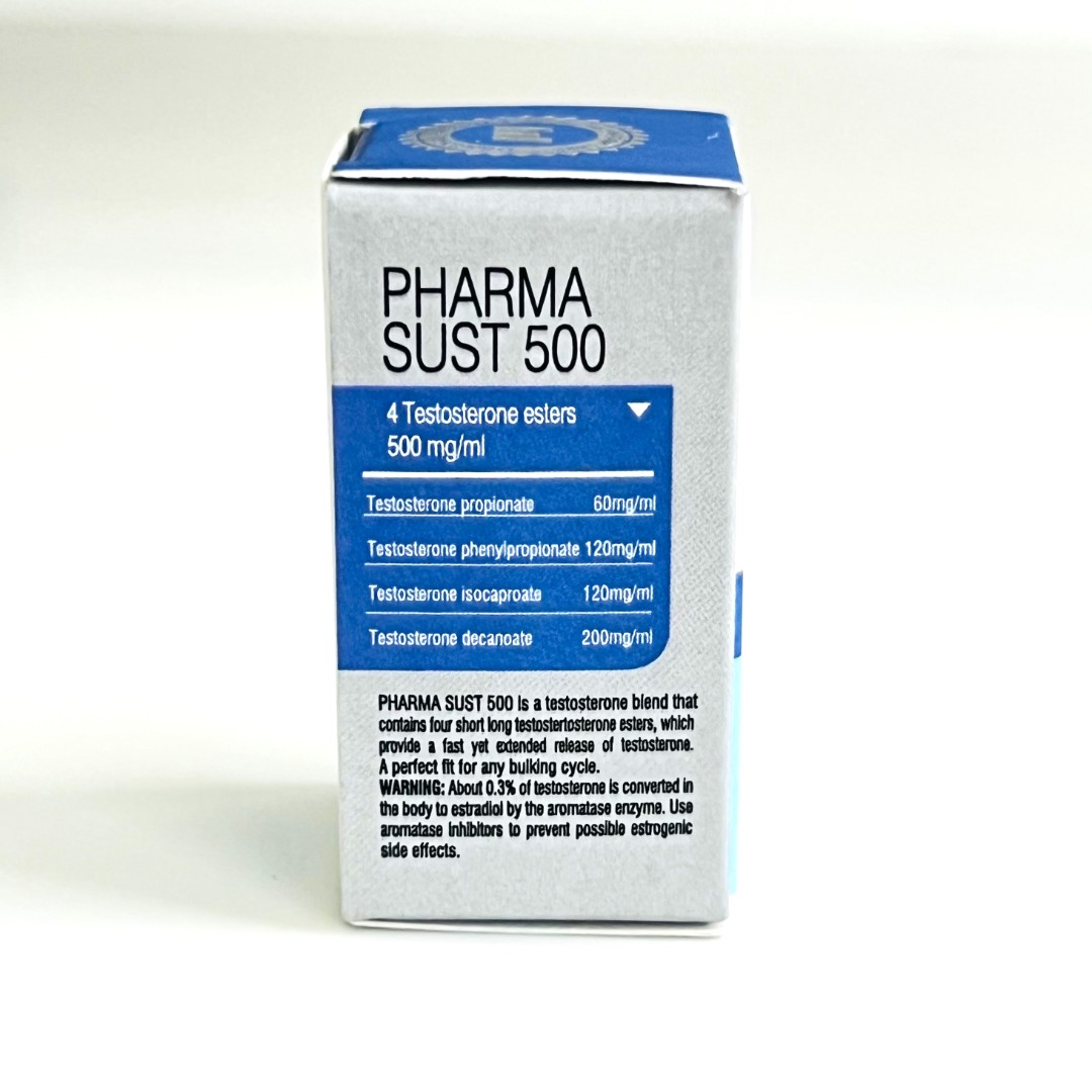 Переваги Pharmasust 500 проявляються вже на наступну добу після ін'єкції, а його тривала дія може досягати до 4 тижнів. Різні ефіри тестостерону, що входять до складу, забезпечують синергетичний ефект, вирівнюючи гормональний фон і запобігаючи провалам у курсі.